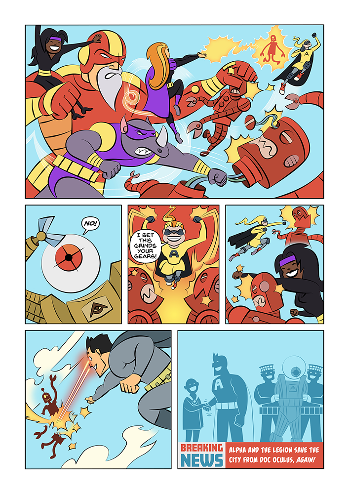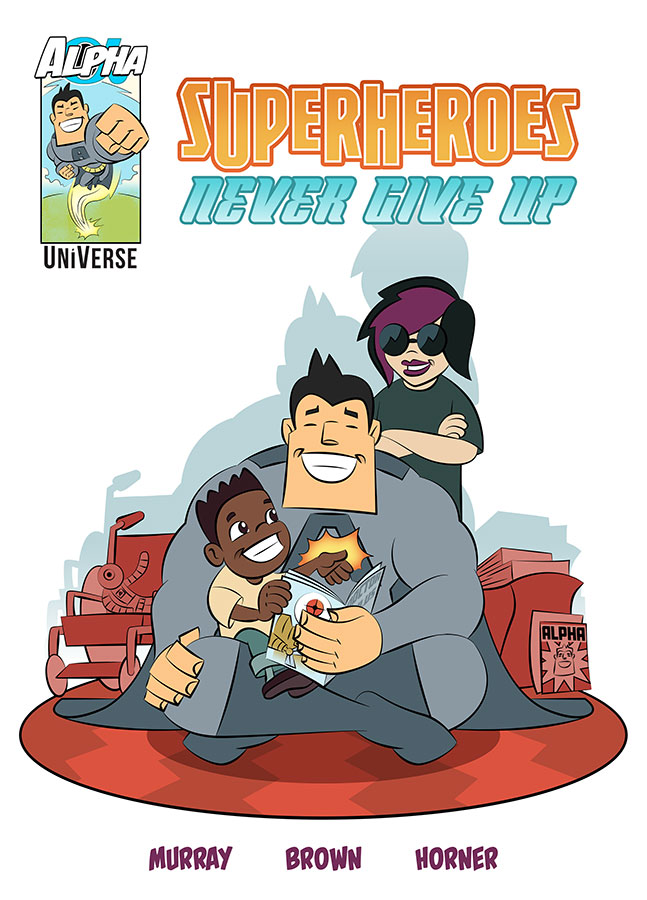 Our first comics feature of 2021 is Alpha – Superheroes Never Give Up written by Chris Murray, with art by Mark Brown and lettering and production by Rebecca Horner.